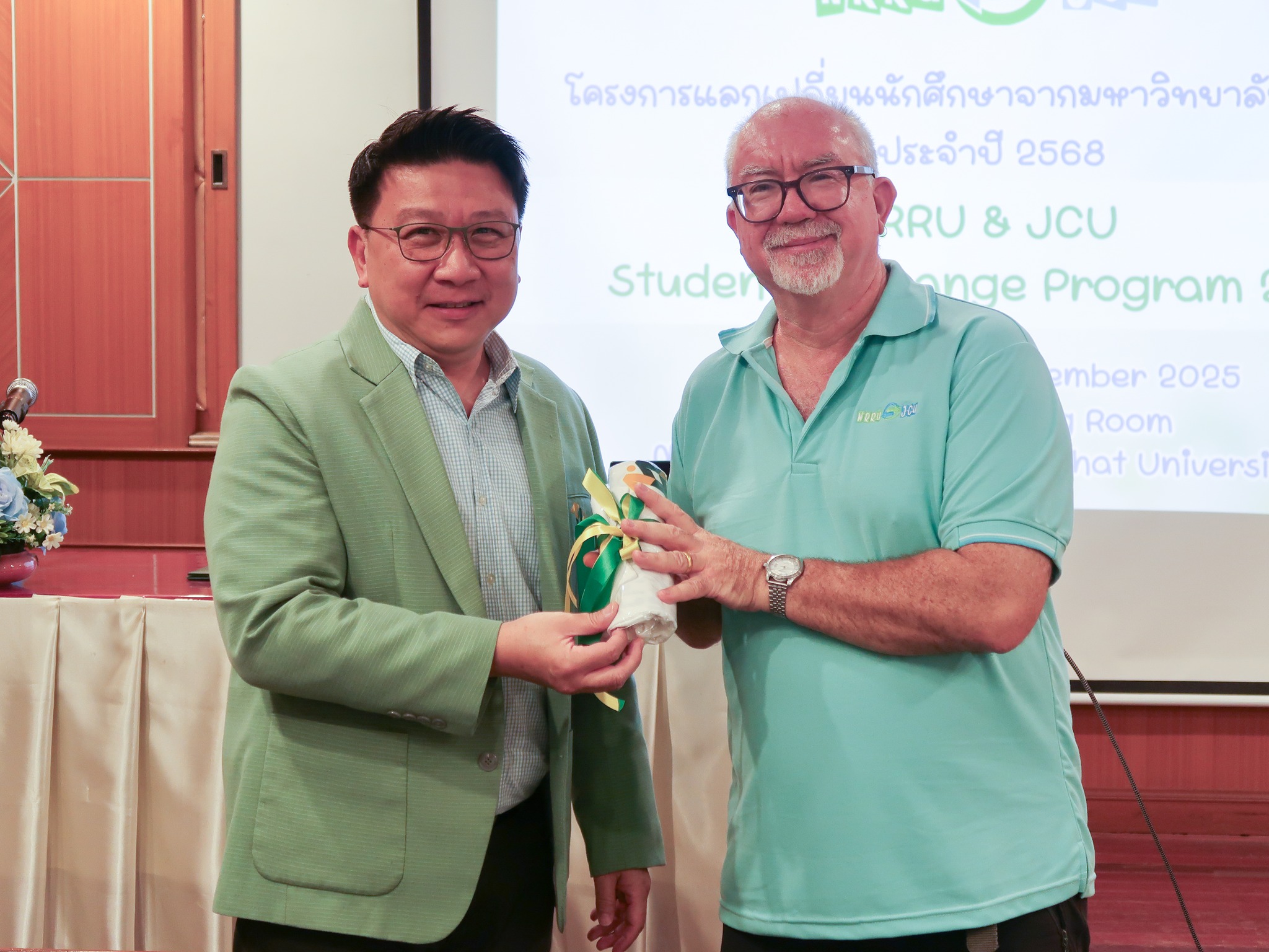 วันที่ 22 ตุลาคม 2568 มหาวิทยาลัยราชภัฏนครราชสีมา โดยกองวิเทศสัมพันธ์ สำนักงานอธิการบดี ได้ดำเนินโครงการรับนักศึกษาแลกเปลี่ยนจาก James Cook University (JCU) เครือรัฐออสเตรเลีย ภายใต้บันทึกข้อตกลงความร่วมมือทางวิชาการระหว่างสองสถาบัน เพื่อส่งเสริมการแลกเปลี่ยนเรียนรู้ด้านภาษาและวัฒนธรรมระหว่างนักศึกษาไทยและออสเตรเลีย