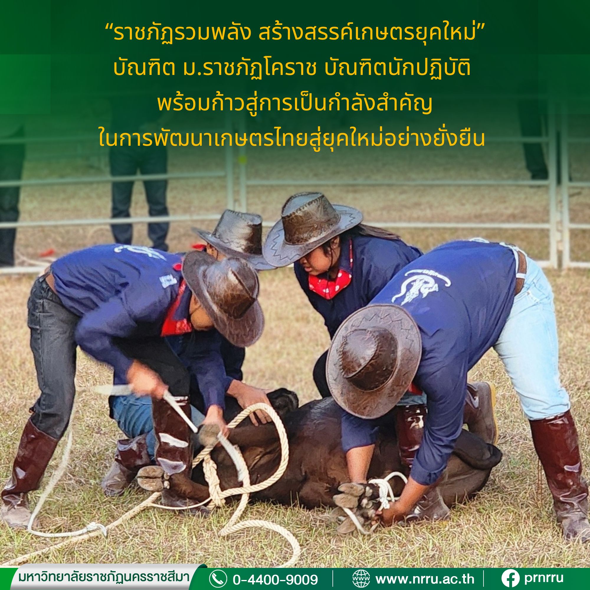 นักศึกษาสาขาวิชาเกษตรศาสตร์ คณะวิทยาศาสตร์และเทคโนโลยี มหาวิทยาลัยราชภัฏนครราชสีมา สร้างชื่อเสียงและความภาคภูมิใจให้กับมหาวิทยาลัย ด้วยการประกาศชัยชนะคว้า 6 รางวัลใหญ่ จากการแข่งขัน “ทักษะวิชาการและวิชาชีพทางการเกษตรเครือข่ายราชภัฏทั่วประเทศ ครั้งที่ 11” ภายใต้แนวคิด“ราชภัฏรวมพลัง สร้างสรรค์เกษตรยุคใหม่ ก้าวไกลด้วยเทคโนโลยี” ระหว่างวันที่ 3–6 กุมภาพันธ์ 2569 ณ มหาวิทยาลัยราชภัฏสกลนคร โดยมีนักศึกษาจากเครือข่ายมหาวิทยาลัยราชภัฏทั่วประเทศเข้าร่วมแข่งขันอย่างคับคั่ง เพื่อแสดงศักยภาพด้านความรู้ทางวิชาการ ควบคู่ทักษะวิชาชีพด้านการเกษตรอย่างเข้มข้น . สำหรับรางวัลที่นักศึกษามหาวิทยาลัยราชภัฏนครราชสีมาได้รับในครั้งนี้ ประกอบด้วย 1. นายธนานุวัต นากกระโทก และ นายวชิรวิทย์ ทองกระโทก ได้รับรางวัล รองชนะเลิศอันดับ 1 การตอบปัญหาทางวิชาการ สาขาสัตวศาสตร์ 2. นายภูริณัฐ คงสัตย์ ได้รับรางวัล รองชนะเลิศอันดับ 1 การแข่งขันทักษะสะบัดแส้ 3. นายปุณณพัฒน์ ถาดครบุรี และ นายณัฐพล สงค์เวียง ได้รับรางวัล รองชนะเลิศอันดับ 1 การแข่งขันทักษะบรรจุถุงปลา 4. นางสาวรินรดา บำรุงกลา และ นายสุริยัณห์ คำดี ได้รับรางวัล รองชนะเลิศอันดับ 1 การแข่งขันทักษะแยกเพศปลา 5. นายธนานุวัต นากกระโทก นายทวีป สังข์เลขา นายธนากร สุดแสง และนายกิตตินันท์ นิลศิริ ได้รับรางวัล รองชนะเลิศอันดับ 2 การประกวดแผนธุรกิจเกษตร 6. นายทวีป สังข์เลขา นายภูริณัฐ คงสัตย์ นายฐิติพงศ์ หอมหวล และนางสาวรินรดา บำรุงกลาง ได้รับรางวัล รองชนะเลิศอันดับ 2 การแข่งขันทักษะคล้องและล้มโค . ความสำเร็จดังกล่าวสะท้อนถึงศักยภาพ ความแข็งแกร่งทางวิชาการ และทักษะวิชาชีพด้านการเกษตรของนักศึกษาอย่างรอบด้าน โดยมี อาจารย์รัชนีกร มูลปา ทำหน้าที่เป็นอาจารย์ผู้ฝึกสอน ถ่ายทอดองค์ความรู้และเสริมสร้างประสบการณ์เชิงปฏิบัติอย่างใกล้ชิด . ความสำเร็จในครั้งนี้นับเป็นอีกหนึ่งบทพิสูจน์คุณภาพการจัดการเรียนการสอนของสาขาวิชาเกษตรศาสตร์ คณะวิทยาศาสตร์และเทคโนโลยี มหาวิทยาลัยราชภัฏนครราชสีมา ที่มุ่งผลิตบัณฑิตนักปฏิบัติ พร้อมก้าวสู่การเป็นกำลังสำคัญในการพัฒนาเกษตรไทยสู่ยุคใหม่อย่างยั่งยืน