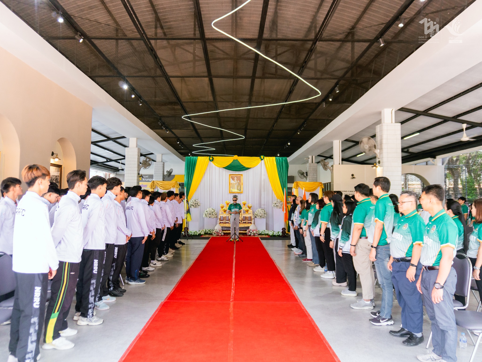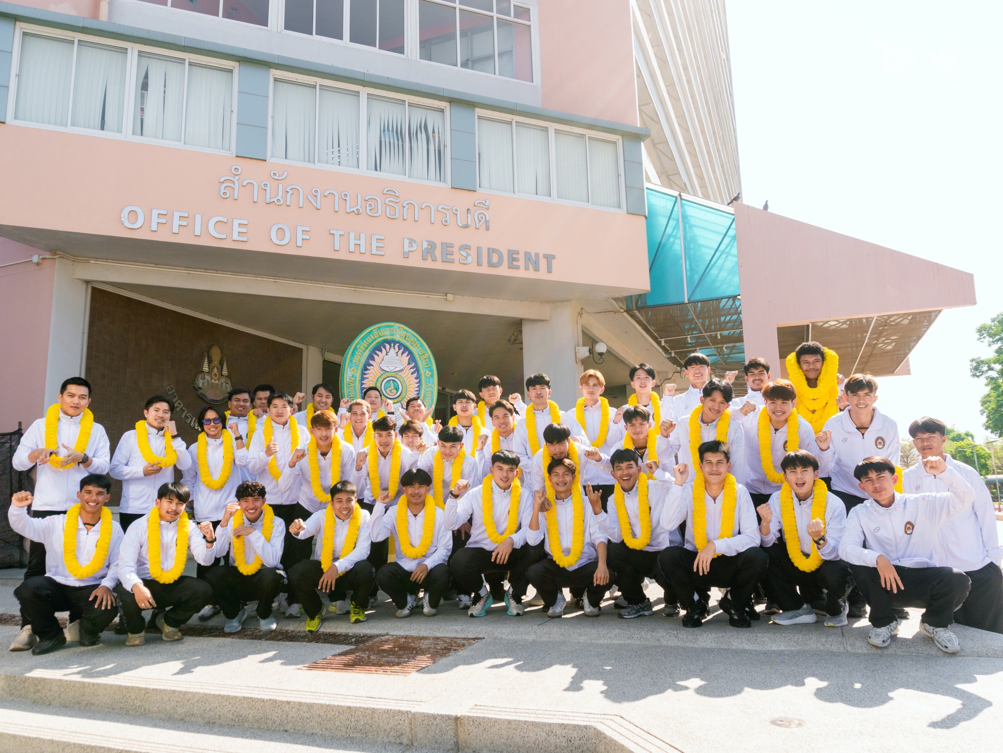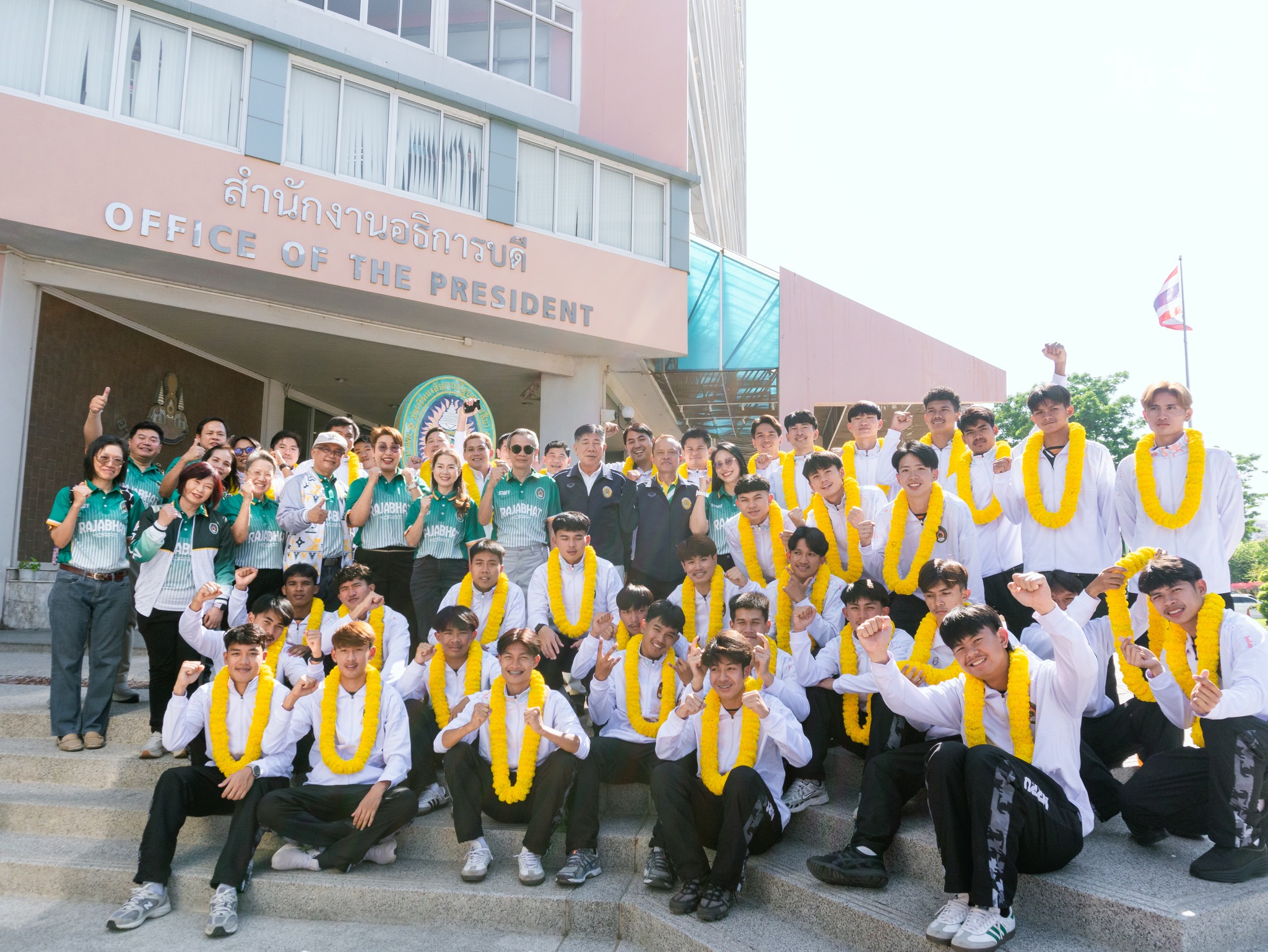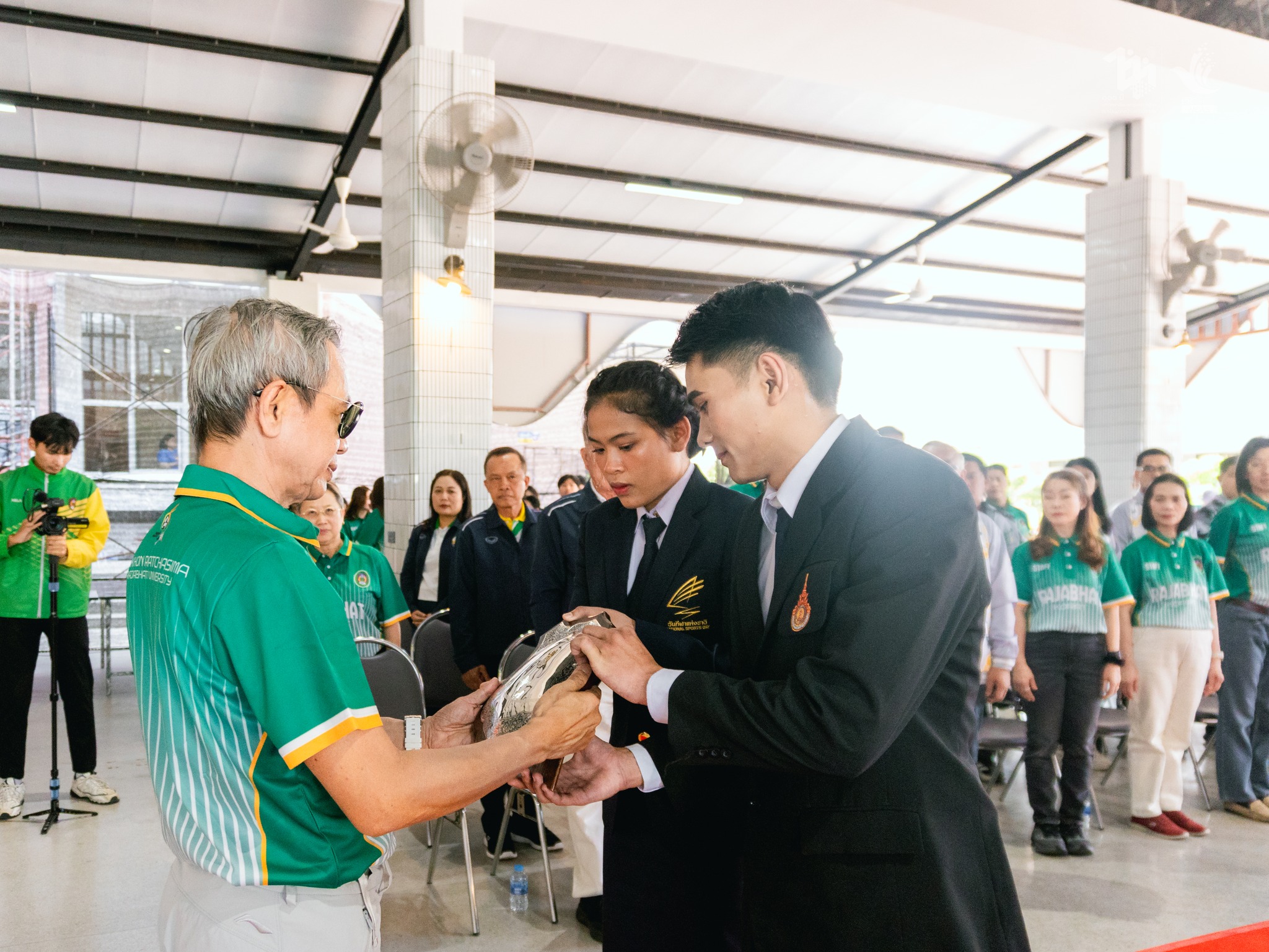 วันที่ 21 กุมภาพันธ์ 2569 เวลา 14.00 น. มหาวิทยาลัยราชภัฏนครราชสีมา ได้จัดพิธีอัญเชิญโล่พระราชทานฯ และมอบกำลังใจให้นักกีฬาฟุตบอลและผู้ฝึกสอน ในการแข่งขันฟุตบอลประเพณีชิงโล่พระราชทานฯ ณ อาคารภัฏภิรมย์ โดยมี รองศาสตราจารย์ ดร.อดิศร เนาวนนท์ อธิการบดี เป็นประธานในพิธี พร้อมด้วยคณะผู้บริหาร คณาจารย์ และนักศึกษา เข้าร่วมพิธี ในการนี้ประธานในพิธีได้กล่าวให้โอวาทและมอบพวงมาลัยเป็นขวัญกำลังใจให้แก่นักฟุตบอล มอบธงประจำมหาวิทยาลัยให้กับนายกองค์การบริหารนักศึกษา ปิดท้ายผู้นำนักศึกษาร้องเพลงมหาวิทยาลัย เรียกพลังสร้างขวัญและกำลังใจให้กับนักกีฬา กองเชียร์ และนักศึกษาในการสู้ศึกฟุตบอลประเพณีชิงโล่พระราชทานฯ ในครั้งนี้