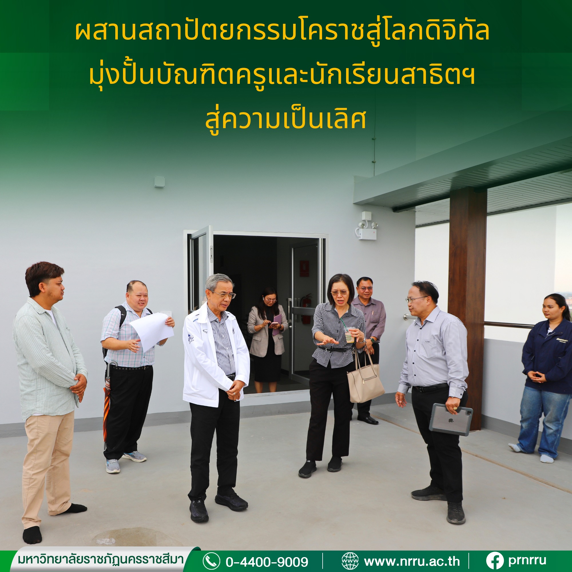 มหาวิทยาลัยราชภัฏนครราชสีมา มหาวิทยาลัยชั้นนำด้านการผลิตครู ประกาศความพร้อมเดินหน้ายกระดับคุณภาพและมาตรฐานการศึกษาในระดับภูมิภาค หลังโครงการก่อสร้าง "อาคารปฏิบัติการและนวัตกรรมทางการศึกษา" อาคาร 8 ชั้นสุดล้ำ ดำเนินการแล้วเสร็จสมบูรณ์ เตรียมเปิดเป็นศูนย์กลางการเรียนรู้แห่งใหม่ที่พร้อมปลดล็อกศักยภาพบัณฑิตคณะครุศาสตร์และนักเรียนโรงเรียนสาธิตฯ ฝ่ายมัธยมศึกษา อย่างเต็มรูปแบบ วานนี้ รองศาสตราจารย์ ดร.อดิศร เนาวนนท์ อธิการบดี พร้อมผู้บริหารและบุคลากรคณะครุศาสตร์ มหาวิทยาลัยราชภัฏนครราชสีมา ตรวจเยี่ยมการก่อสร้างอาคารปฏิบัติการและนวัตกรรมทางการศึกษา เริ่มต้นสัญญาเมื่อวันที่ 25 เมษายน 2566 และได้สิ้นสุดสัญญาลงเมื่อวันที่ 19 กุมภาพันธ์ 2569 ที่ผ่านมา โดยผู้รับจ้างได้ส่งมอบงานครบถ้วนทั้ง 30 งวดงานแล้ว อยู่ระหว่างคณะกรรมการพิจารณาตรวจรับ อาคารแห่งนี้ได้รับการออกแบบให้มีความทันสมัย ตอบโจทย์โลกยุคดิจิทัล แต่ยังคงไว้ซึ่งเอกลักษณ์และคุณค่าของท้องถิ่นอย่างแยบยล ด้วยการนำแนวคิดสถาปัตยกรรม "เรือนโคราช" มาประยุกต์ใช้ โดดเด่นด้วยการวางอาคาร 2 หลังขนานกันในลักษณะเรือนแฝด มีชานหรือโถงกั้นกลาง ผสานกับการเลือกใช้ฝาไม้กระดานตีซ้อนเกล็ดเว้นจังหวะเป็นช่องแสง และที่ตอกย้ำอัตลักษณ์อย่างชัดเจนคือการนำ "ดินด่านเกวียน" ดินเหนียวเนื้อละเอียดที่ให้สีแดงธรรมชาติและทนทานต่อการเผา มาใช้ประดับตกแต่งอาคารอย่างสวยงามลงตัว เพื่อตอบสนองพันธกิจหลักในการผลิตบุคลากรทางการศึกษาชั้นนำ อาคารแห่งนี้ได้จัดสรรพื้นที่ใช้สอยรวมกว่า 8,252 ตารางเมตร แบ่งออกเป็น 2 ส่วนหลัก ที่แสดงให้เห็นถึงความพร้อมในทุกมิติ ได้แก่: ส่วนที่ 1: อาณาจักรแห่งการผลิต "บัณฑิตครู" ยุคใหม่ (พื้นที่ 4,644 ตารางเมตร) พื้นที่สำหรับนวัตกรรมการศึกษาระดับอุดมศึกษา ถูกออกแบบมาเพื่อติดอาวุธให้ว่าที่ครูคณะครุศาสตร์มีความพร้อมสูงสุด ทั้งด้านวิชาการ เทคโนโลยี และจิตวิทยา ประกอบด้วย: กลุ่มห้องพัฒนาทักษะและนวัตกรรม: ห้องปฏิบัติการพัฒนาครู, ห้องนวัตกรรมและสืบค้นข้อมูลอัจฉริยะ, Learning space, ห้องบรรยายค้นคว้าและวิจัย และห้องปฏิบัติการจัดการเรียนรู้ กลุ่มห้องเทคโนโลยีและสื่อการสอน: ห้องปฏิบัติการคอมพิวเตอร์, ห้องประชุมอัจฉริยะขนาด 120 และ 300 ที่นั่ง, สตูดิโอบันทึกเสียง, ห้องปฏิบัติการถ่ายภาพนิ่ง และห้องปฏิบัติการบันทึกภาพโทรทัศน์ กลุ่มห้องปฏิบัติการเฉพาะทาง: ห้องปฏิบัติการนวัตกรรมทางการศึกษาปฐมวัย, ห้องศูนย์การเรียนรู้ทักษะทางสมอง, ห้องปฏิบัติการคลินิกนวัตกรรมทางกา