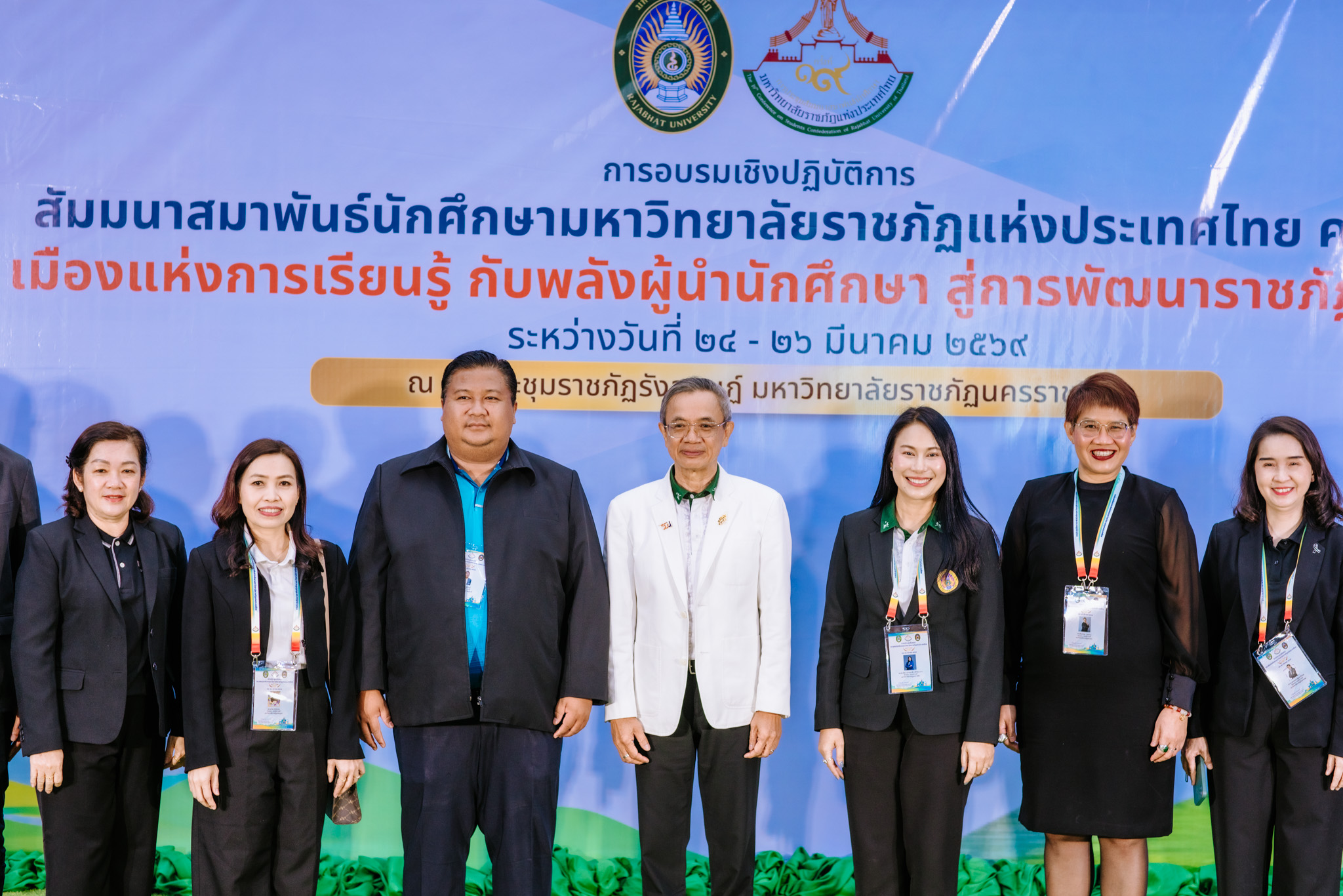 มหาวิทยาลัยราชภัฏนครราชสีมา เปิดบ้านต้อนรับทัพผู้นำนักศึกษาจากมหาวิทยาลัยราชภัฏทั้ง 38 แห่งทั่วประเทศ ในการอบรมเชิงปฏิบัติการ : สัมมนาสมาพันธ์นักศึกษามหาวิทยาลัยราชภัฏแห่งประเทศไทย ครั้งที่ 19 ซึ่งจัดขึ้นระหว่างวันที่ 24 – 26 มีนาคม 2569 ณ หอประชุมราชภัฏรังสฤษฏ์ โดยได้รับเกียรติจาก รองศาสตราจารย์ ดร.อดิศร เนาวนนท์ อธิการบดีมหาวิทยาลัยราชภัฏนครราชสีมา และประธานที่ประชุมอธิการบดีมหาวิทยาลัยราชภัฏแห่งประเทศไทย เป็นประธานในพิธีเปิด ท่านประธานได้เน้นย้ำถึงบทบาทสำคัญของนักศึกษาในฐานะ “คนของพระราชา ข้าของแผ่นดิน” ที่ต้องมีความรู้คู่คุณธรรม และเป็นกำลังสำคัญในการขับเคลื่อนการพัฒนาท้องถิ่นตามพระราชปณิธาน เพื่อสร้างบัณฑิตที่มีจิตสาธารณะและพร้อมรับใช้สังคมในวิถีชีวิตใหม่ได้อย่างสง่างาม