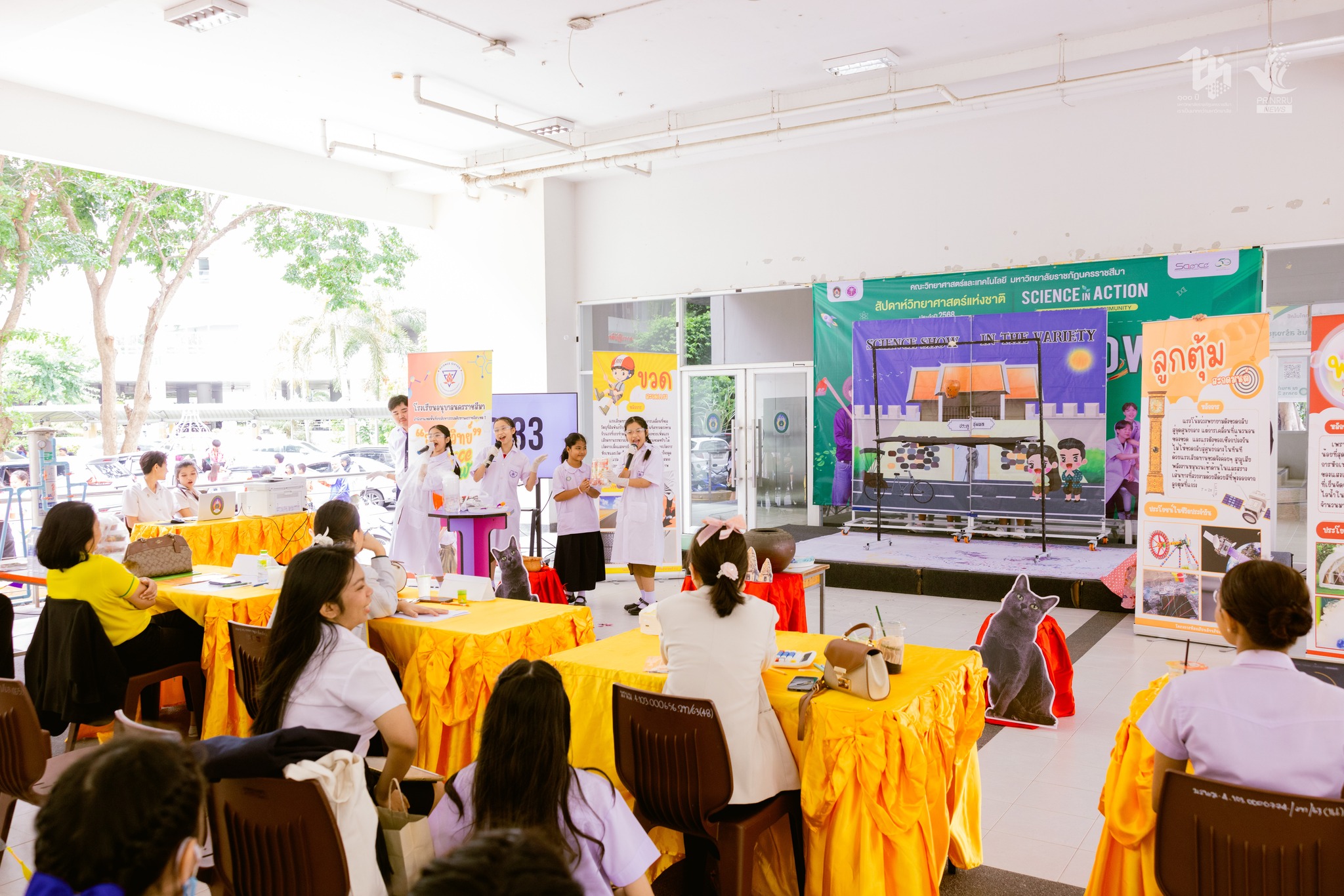 วันที่ 18 สิงหาคม 2568 คณะวิทยาศาสตร์และเทคโนโลยี มหาวิทยาลัยราชภัฏนครราชสีมา จัดพิธีเปิดงานสัปดาห์วิทยาศาสตร์แห่งชาติ ประจำปี 2568 “Science in action for Sustainable Community” ณ หอประชุมราชภัฏรังสฤษฏ์ โดยมี รองศาสตราจารย์ ดร.อดิศร เนาวนนท์ อธิการบดี เป็นประธานในพิธีเปิด พร้อมมอบโล่และใบประกาศเกียรติคุณให้แก่ นักวิทยาศาสตร์อาวุโสและครูวิทยาศาสตร์ดีเด่น ประจำปี 2568จากสมาคมวิทยาศาสตร์แห่งประเทศไทยในพระบรมราชูปถัมภ์ นักวิจัยระดับดีเด่น ดีมาก และดี ผู้สอนดีเด่น ระดับคณะ ประจำปีการศึกษา 2567 ศิษย์เก่าดีเด่น ประจำปีการศึกษา 2568 นอกจากนี้ยังมีการประกวด/แข่งขัน ดังนี้ การแข่งขันกีฬาอีสปอร์ต (E-Sport) การแข่งขันตอบปัญหาทางวิทยาศาสตร์ – คณิตศาสตร์ การแข่งขันวาดภาพจินตนาการทางวิทยาศาสตร์ การแข่งขันทักษะด้านการคิดด้วยการโปรแกรม (Coding) และนวัตกรรม (Innovation) การแข่งขันยิงจรวดขวดน้ำ การแข่งขันการเขียนโปรแกรม Scratch การแข่งขันวาดภาพตามจินตนาการด้วยโปรแกรม Paint การประกวดการแสดงทางวิทยาศาสตร์ (Science Show) และการประกวดโครงงานคณิตศาสตร์-วิทยาศาสตร์ การประกวดชุดรีไซเคิล ฯลฯ . สัปดาห์วิทยาศาสตร์แห่งชาติ ประจำปี 2568 คณะวิทยาศาสตร์และเทคโนโลยี มหาวิทยาลัยราชภัฏนครราชสีมา จัดขึ้นระหว่างวันที่ 18-20 สิงหาคม 2568 ณ มหาวิทยาลัยราชภัฏนครราชสีมา เพื่อส่งเสริมทักษะทางวิทยาศาสตร์ให้กับเยาวชน คณะวิทยาศาสตร์และเทคโนโลยี มหาวิทยาลัยราชภัฏนครราชสีมา เป็นหน่วยงานหนึ่งที่มีหน้าที่ในการให้บริการวิชาการแก่สังคม พัฒนา ปรับปรุงและถ่ายทอดเทคโนโลยีและองค์ความรู้ใหม่ให้แก่ท้องถิ่น จึงจัดงานสัปดาห์วิทยาศาสตร์แห่งชาติขึ้นเป็นประจำทุกปี เพื่อตอบสนองยุทธศาสตร์ใหม่มหาวิทยาลัยราชภัฏ เพื่อการพัฒนาท้องถิ่นตามพระราโชบาย โดยมีการจัดกิจกรรมเพื่อให้นักเรียน นักศึกษา และประชาชนผู้สนใจทั่วไป ได้รับความรู้ทางด้านวิทยาศาสตร์และเทคโนโลยี ซึ่งเป็นการพัฒนาและเสริมสร้างศักยภาพคน อีกทั้งยังเป็นการกระตุ้นสร้างความสนใจให้แก่นักเรียน นักศึกษา ประชาชนผู้สนใจทั่วไปได้ตระหนักถึงความเปลี่ยนแปลง ความก้าวหน้าทางด้านวิทยาศาสตร์