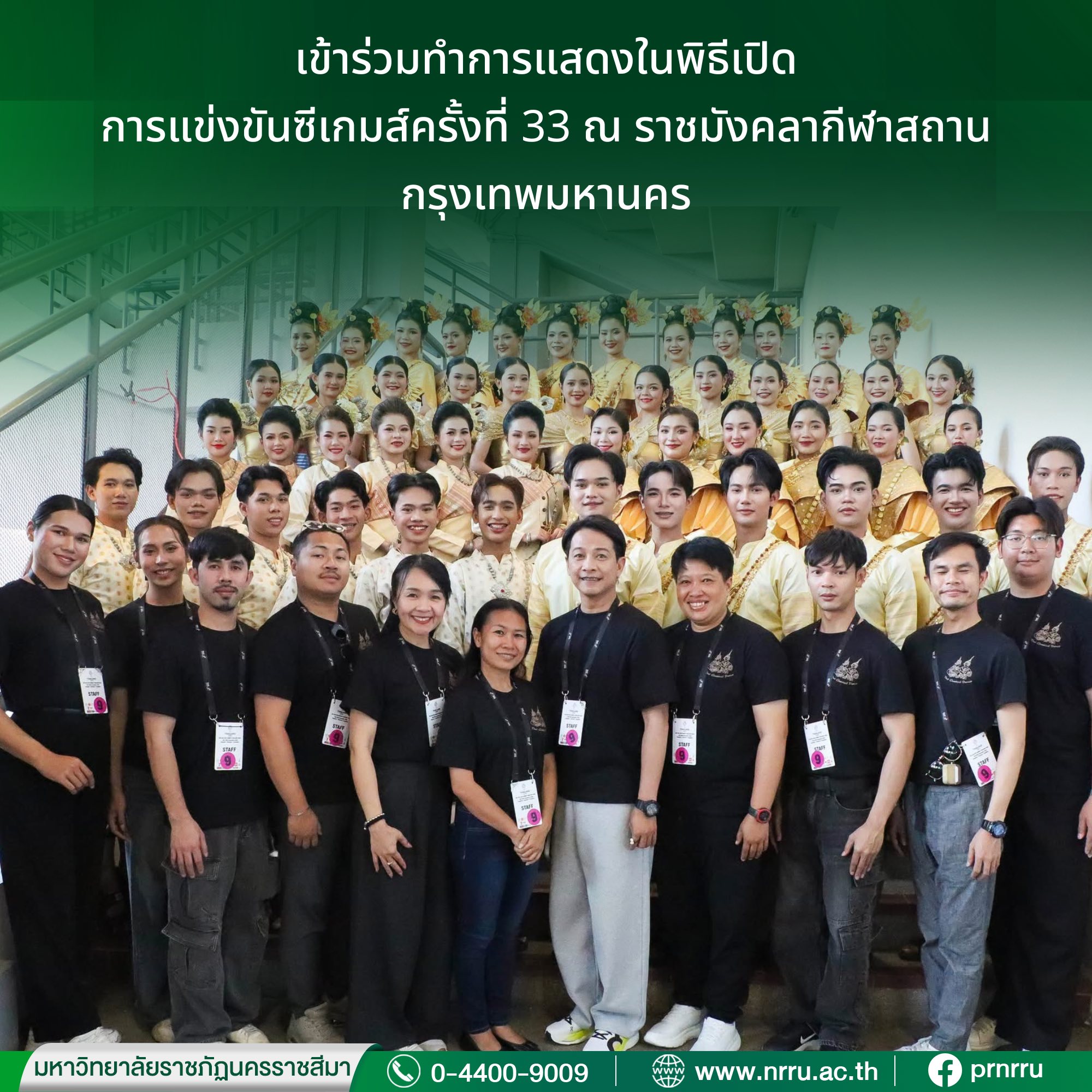 วันที่ ๙ ธันวาคม ๒๕๖๘ มหาวิทยาลัยราชภัฏนครราชสีมา โดย สำนักศิลปะและวัฒนธรรม ร่วมกับสาขาวิชานาฏศิลป์ไทย และบริษัท วาไรตี้ แดนซ์ จำกัด ร่วมจัดการแสดงในนพิธีเปิดการแข่งขันซีเกมส์ครั้งที่ ๓๓ ณ ราชมังคลากีฬาสถาน กรุงเทพมหานครโดยในพิธีเปิดการแข่งขันได้รับพระมหากรุณาธิคุณจากพระบาทสมเด็จพระวชิรเกล้าเจ้าอยู่หัว และสมเด็จพระนางเจ้าสุทิดา พัชรสุธาพิมลลักษณ พระบรมราชินี เสด็จพระราชดำเนินเป็นองค์ประธานในพิธีเปิดการแข่งขัน