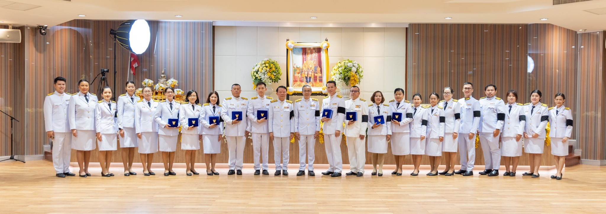 วันที่ 12 กุมภาพันธ์ 2569 ณ ห้องประชุมสระบัว ชั้น 1 อาคารราชภัฏรังสฤษฏ์ มหาวิทยาลัยราชภัฏนครราชสีมา จัดพิธีรับพระราชทานเครื่องราชอิสริยาภรณ์ ชั้นสายสะพาย ประจำปี 2567 ในโอกาสพระบาทสมเด็จพระเจ้าอยู่หัว ทรงพระกรุณาโปรดเกล้าโปรดกระหม่อมพระราชทานเครื่องราชอิสริยาภรณ์ ชั้นตราประถมาภรณ์มงกุฎไทย ชั้นสายสะพาย เพื่อเชิดชูเกียรติให้กับข้าราชการในสังกัด มหาวิทยาลัยราชภัฏนครราชสีมา จำนวน 9 ราย ในการนี้ มหาวิทยาลัยราชภัฏนครราชสีมา ได้จัดพิธีรับพระราชทานเครื่องราชอิสริยาภรณ์ โดยมี รองศาสตราจารย์ ดร.อดิศร เนาวนนท์ อธิการบดี เป็นประธานในพิธี พร้อมด้วย ผู้ช่วยศาสตราจารย์ ดร.รัฐกรณ์ คิดการ รองอธิการบดีฝ่ายทรัพยากรบุคคลและกฏหมาย เป็นผู้กล่าวรายงานและเบิกตัวผู้เข้ารับพระราชทานเครื่องราชอิสริยาภรณ์ จากนั้นข้าราชการในสังกัดมหาวิทยาลัยราชภัฏนครราชสีมาเข้ารับพระราชทาน เครื่องราชอิสริยาภรณ์หน้าพระบรมฉายาลักษณ์ตามลำดับ และประธานในพิธีกล่าวแสดงความยินดีกับผู้เข้ารับพระราชทานเครื่องราชอิสริยาภรณ์ทุกท่าน ว่าวันนี้การได้รับพระมหากรุณาธิคุณ ที่ทรงพระราชทานเครื่องราชอิสริยาภรณ์ ถือว่าเป็นมงคลและมีคุณค่ายิ่งของชีวิตข้าราชการ ที่ท่านเป็นผู้ที่มีความประพฤติดี ถือเป็นทรัพยากรบุคคลที่มหาวิทยาลัยราชภัฏนครราชสีมา มีความภูมิใจเป็นอย่างยิ่ง