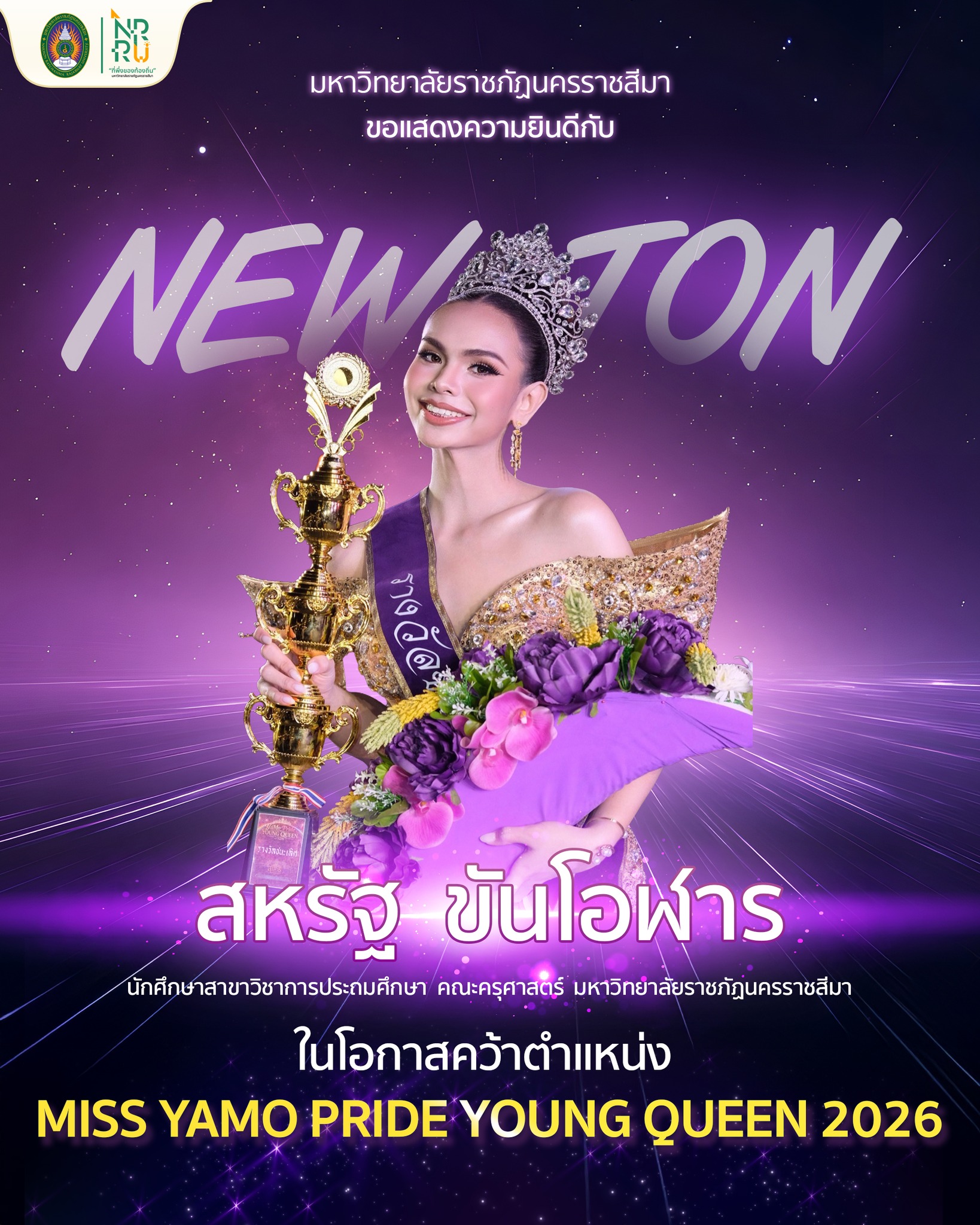 มหาวิทยาลัยราชภัฏนครราชสีมา ขอแสดงความยินดีกับ สหรัฐ ขันโอฬาร คว้าตำแหน่ง Miss YAMO PRIDE YOUNG QUEEN 2026