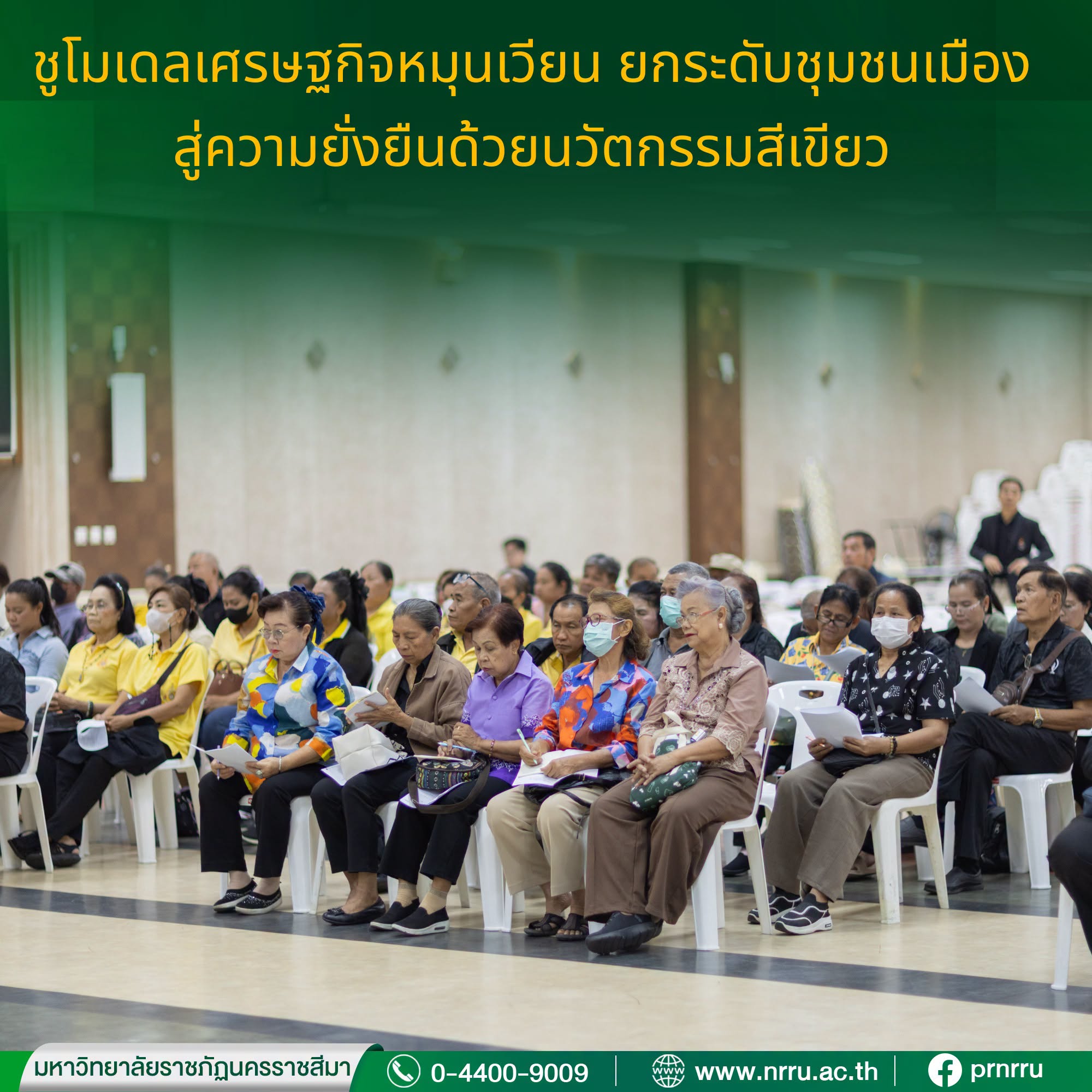 โครงการนี้จัดขึ้นโดยมีวัตถุประสงค์เพื่อยกระดับเศรษฐกิจฐานรากบนหลักปรัชญาของเศรษฐกิจพอเพียง และสร้างเครือข่ายชุมชนสีเขียวเชิงวัฏจักรที่เข้มแข็ง ผ่านการพัฒนาต้นแบบนวัตกรรมเทคโนโลยีการจัดการขยะที่เหมาะสมกับบริบทของเมืองนครราชสีมา ด้วยหลักการและเหตุผลที่มุ่งเน้นการจัดการขยะต้นทาง การใช้เทคโนโลยีสนับสนุนการแปรรูปเศษอาหาร และการเพิ่มมูลค่าวัสดุเหลือใช้สู่ผลิตภัณฑ์ Upcycle BCG ซึ่งนับเป็นกลไกสำคัญในการลดความเสี่ยงด้านสิ่งแวดล้อมและส่งเสริมคุณภาพชีวิตที่ดีให้แก่คนในชุมชนอย่างยั่งยืน ทั้งยังเป็นการสร้างระบบบริหารจัดการและติดตามประเมินผลที่มีประสิทธิภาพ เพื่อให้เกิดการขยายผลและสร้างรายได้กลับคืนสู่ชุมชนอย่างเป็นรูปธรรมในระยะยาว