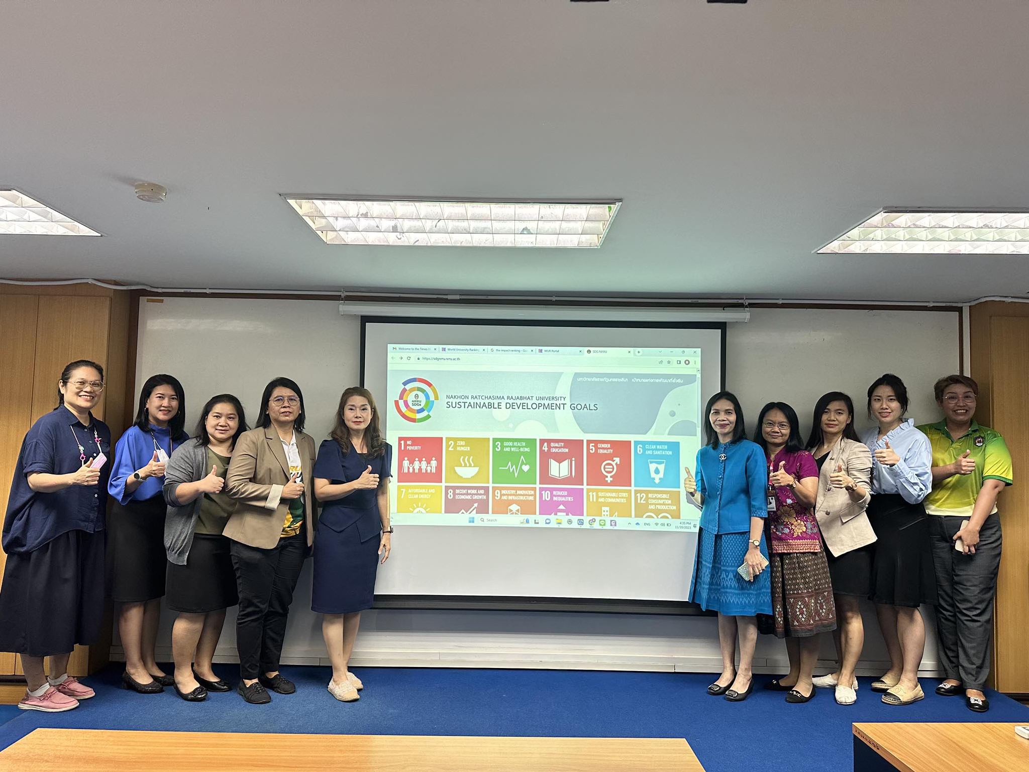 มหาวิทยาลัยราชภัฏนครราชสีมา นำโดย รองศาสตราจารย์ ดร.อดิศร เนาวนนท์ รักษาราชการแทนอธิการบดี พร้อมด้วย ผู้บริหาร และคณะทำงานจากทุกภาคส่วนในมหาวิทยาลัยราชภัฏนครราชสีมา ร่วมขับเคลื่อนการดำเนินงานเพื่อการพัฒนาท้องถิ่น มีการนำเป้าหมายการพัฒนาที่ยั่งยืน (Sustainable Development Goals:SDGs) มาเป็นส่วนสำคัญในการดำเนินงานของมหาวิทยาลัยและขับเคลื่อนในภารกิจงาน 4 ด้าน คือ 1)ด้านงานวิจัย 2)ด้านการศึกษา 3)ด้านการบริหารจัดการภายในและระบบธรรมาภิบาล และ4)ด้านการเป็นผู้นำ ทำงานกับองค์กรอื่น สอดคล้องกับเป้าหมายการพัฒนาของสหประชาชาติ (The UN Sustainable Development Goals) ในปี 2024 มหาวิทยาลัยราชภัฏนครราชสีมาได้ดำเนินการตามเป้าหมาย SDGs 12 เป้าหมาย โดยมีการกำหนดเป็นตัวชี้วัดไว้ในแผนยุทธศาสตร์ของมหาวิทยาลัยราชภัฏนครราชสีมา(พ.ศ.2566-2570) มีการสร้างการรับรู้ของบุคลากรของมหาวิทยาลัย ประกอบด้วย อาจารย์ เจ้าหน้าที่ และนักศึกษาให้เห็นถึงความสำคัญของการดำเนินงานตามพันธกิจในทุกมิติเพื่อให้เกิดความยั่งยืน รวมไปถึงการสร้างเครือข่ายการทำงานร่วมกับชุมชน เพื่อสร้างความเข้มแข็งและยั่งยืน พร้อมทั้งมีการนำผลการดำเนินงานที่โดดเด่นเข้าร่วมประกวด The Award Asia 2024