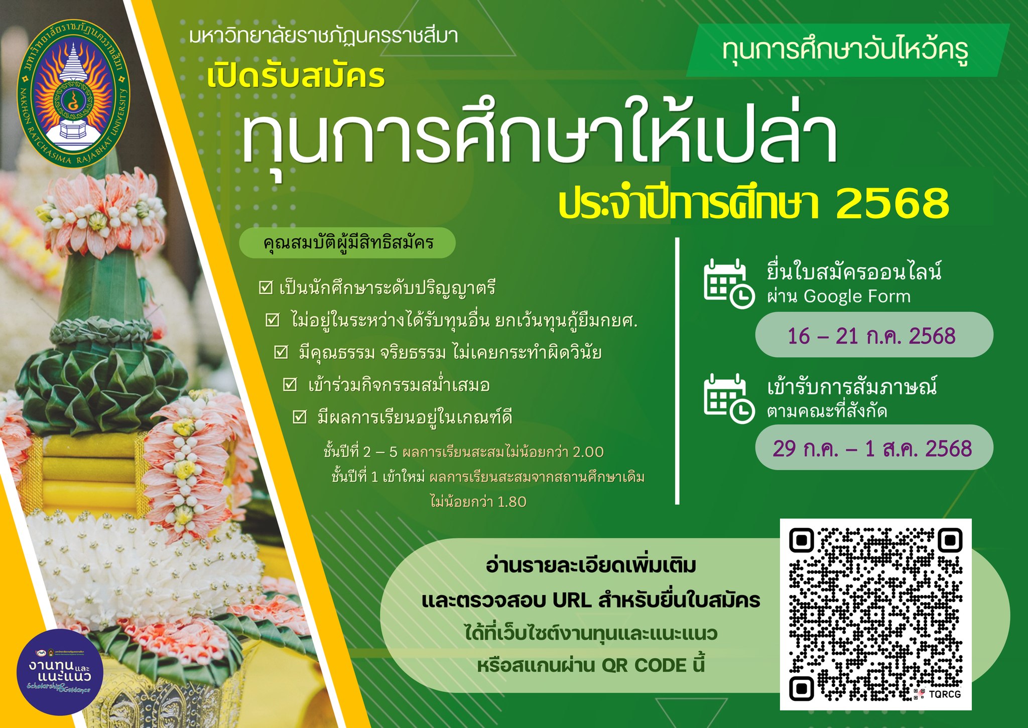เปิดรับสมัคร ทุนการศึกษาให้เปล่า (วันไหว้ครู) ประจำปีการศึกษา 2568