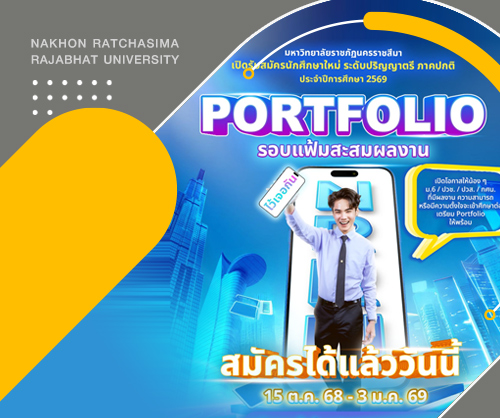 มหาวิทยาลัยราชภัฏนครราชสีมา เปิดรับสมัครนักศึกษาใหม่ ระดับปริญญาตรี ภาคปกติ ประจำปีการศึกษา 2569 รอบแฟ้มสะสมผลงาน